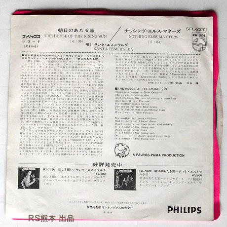 A面「朝日のあたる家」THE HOUSE OF THE RISING SUN (4’36”)