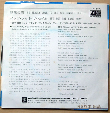 SIDE-A「 秋風の恋 」 I'd Really Love To See You Tonight (2'36")