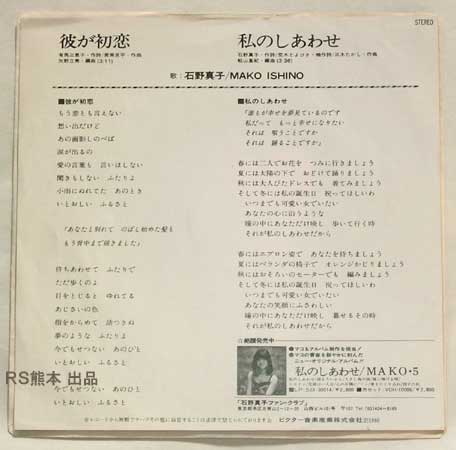 A面 「 彼が初恋 」 作詞:有馬三恵子 作曲:筒美京平 編曲:矢野立美