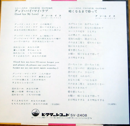 SIDE-1「グッド・バイ・マイ・ラブ」 作詞:なかにし礼 作曲:平尾昌晃 編曲:竜崎孝路